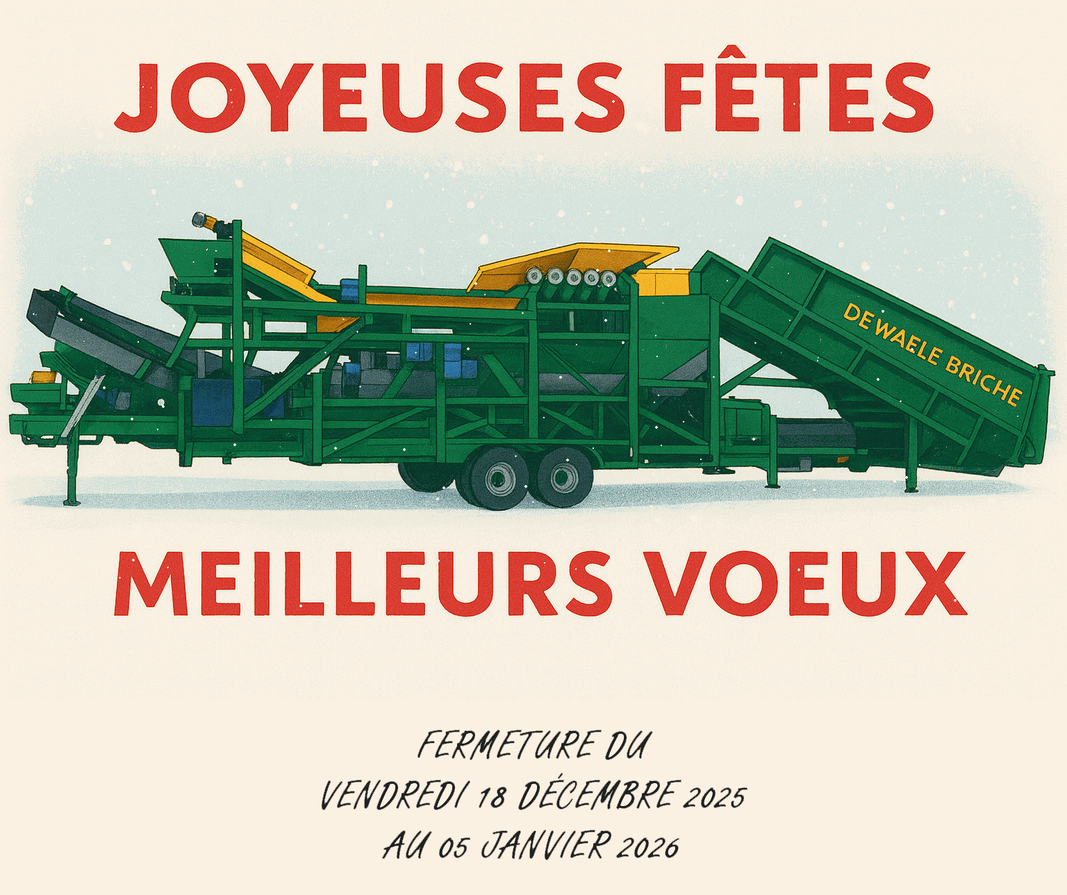 Conçu et produit sur le site de Terdeghem, dans le nord de la France, le matériel Dewaele Briche est reconnaissable à sa couleur verte qui les intégrent parfaitement au monde agricole.